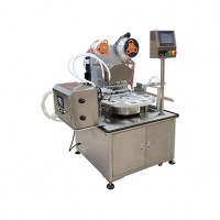 機器特點:304機體,電箱上置,機體臺面可沖水,可快速更換模具,一臺機做多款產品,定位精準切邊小,采用PLC及人機界面操作系統,各項參數設定直觀準確,操作便捷。自動定量灌裝,運行穩定可靠,灌裝封口性能優越,效率高,適用性廣。