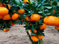高糖晚熟雜柑甘平是日本愛媛縣果樹實驗場于1991年以椪柑為父本,以西之香(清見+特羅維他甜橙)為母本雜交育成的中晚熟雜柑的品種,初定名為愛媛34號,2007年以“甘平”名稱在日本進行品種登記。2012年由中國農業和學院柑橘研究所眾韓國濟州柑橘試驗場引進種植。千思農林培育的甘平雜柑苗定植后樹冠長勢中等,前期樹勢較直立,結果后樹勢需拉枝控梢保持樹勢開張;,幼樹易抽發強旺夏梢。甘平果實扁圓,果型中大,單果均重200g-360g,果皮橙紅、薄,易剝離。果面光滑,果頂和基部平;囊壁薄,但囊瓣易內裂;果肉橙紅色,肉質細嫩化渣,汁多味甜,11月下旬可溶性固形物含量達12.2%,酸含量1.06%,12月中旬可溶性固形物含量可達13%,酸含量0.89%,可食率83.6%,出汁率54.7%,1月上旬可溶性固形物含量達15%。無核,品質優。適應性較廣,但在高溫干旱較易裂果;果實成熟后延遲收易發生囊瓣內裂。
